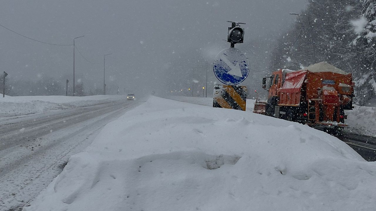 Ankara ile İstanbul arasındaki en önemli geçiş güzergahı olan Bolu Dağı geçişinde, dün öğle saatlerinde başlayan yoğun kar yağışı aralıksız devam ediyor. Bolu Dağı'nın D-100 kara yolu geçişinde etkili olan yoğun kar ve tipi ulaşımı aksattı. Kar kalınlığının yarım metreyi aştığı bölgede Karayolları ekipleri, Anadolu Otoyolu ve D-100 karayolunda yolu açık tutabilmek için çalışmalarını sürdürüyor. Ekipler, kar küreme ve tuzlama çalışması yapıyor. (DHA)