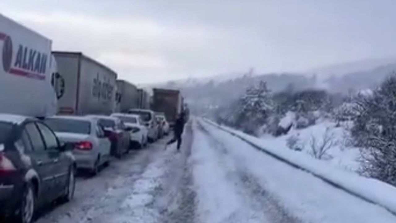 Anadolu Otoyolu'nun Bolu geçişinde etkili olan kar yağışı nedeniyle çok sayıda araç yolda kaldı. Bu araçlar nedeniyle güzergahlarda uzun araç kuyrukları oluştu. Ekipler, yolun temizlenmesi ve araçların yoldan kaldırılması için çalışmalarını sürdürüyor. (DHA)
