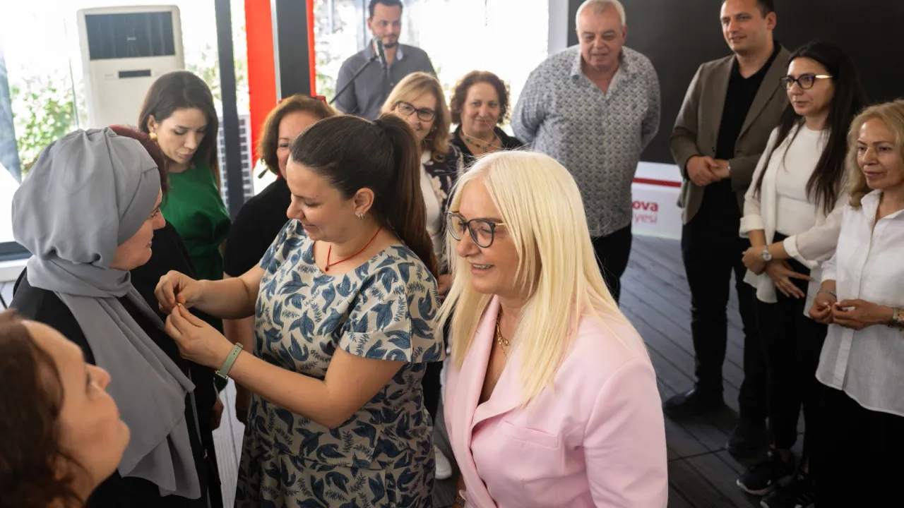CHP Bornova İlçe Başkanlığı’nın düzenlediği organizasyonla Bornova’nın farklı mahallelerinden çok sayıda kadın CHP'ye katıldı. Partiye yeni katılan kadınlara rozetleri takılırken, etkinliğe Bornova Belediye Başkanı Ömer Eşki, eşi Beste Eşki ve CHP’li kadın meclis üyeleri de katıldı.İZMİR (İGFA) - İzmir'in Bornova ilçesinde CHP, kadınlarla güçleniyor