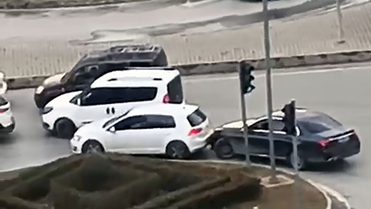 Olay, Çukurova ilçesi Mavi Bulvar'da meydana geldi. İddiaya göre; adı öğrenilemeyen erkek, boşanma aşamasındaki eşinin otomobiline arkadan çarpıp, araçtan indi. Arka koltuktaki çocuğunu almaya çalıştığı öne sürülen şüpheli, kendisine engel olmaya çalışan eşini darbetti. Diğer sürücülerin araya girmesiyle otomobiline binen şüpheli, eşinin aracına defalarca çarparak yoluna devam etti. O anlar, cep telefonu kamerasıyla görüntülendi. (DHA)