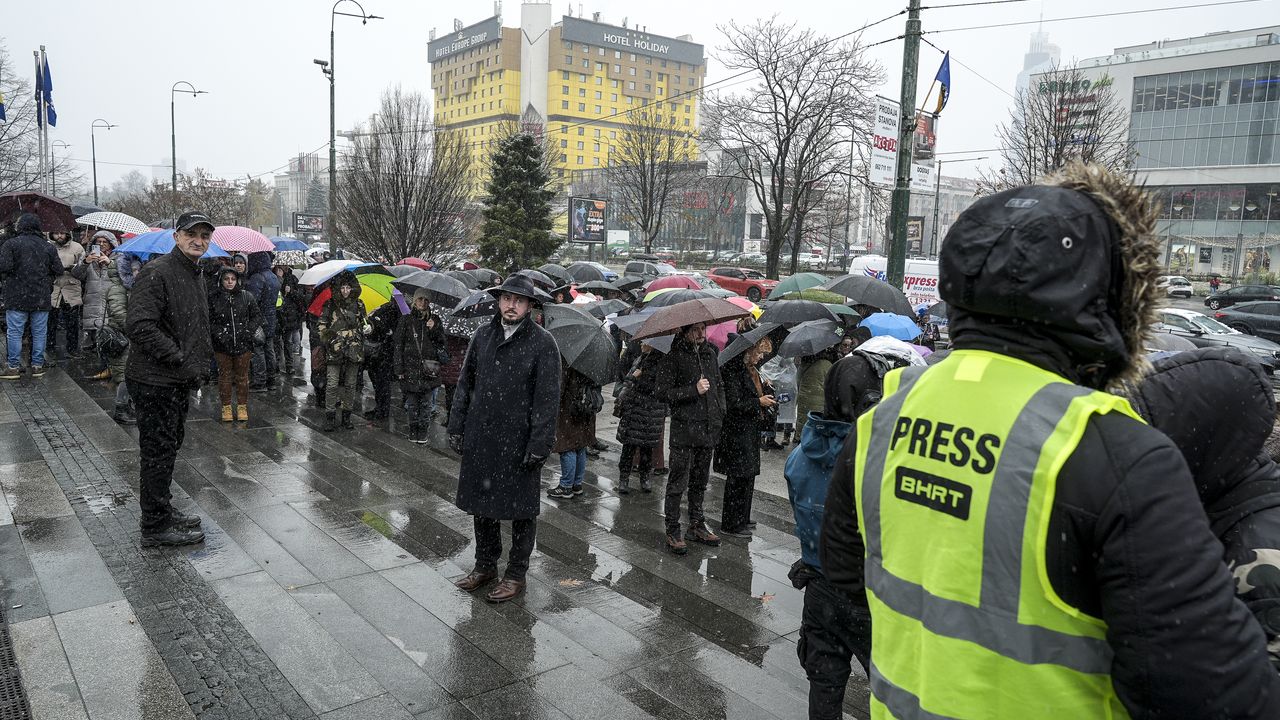 Başkent Saraybosna'daki parlamento binası önünde toplanan kamu yayıncısı BHRT'nin çalışanları, yetkililerden yasal yükümlülüklerin uygulanması ve televizyonun kapanma tehlikesinin son bulmasını talep etti.