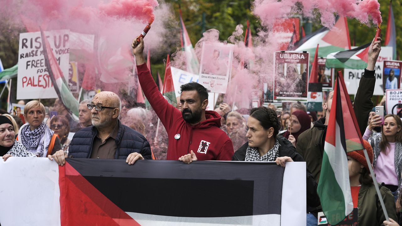 SARAYBOSNA (AA) - Bosna Hersek'in başkenti Saraybosna'da yüzlerce kişi, İsrail'in Gazze'deki soykırımını protesto etti.