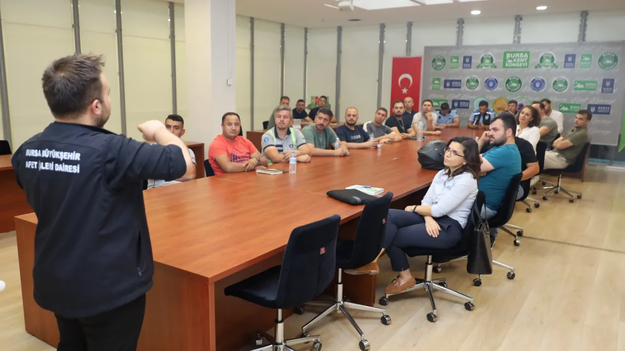Atatürk Kültür Merkezi Merinos Yerleşkesi’nde bir araya gelen ekiplere, ‘Temel afet farkındalık eğitimi’ verildi. İlerleyen günlerde ileri seviyede eğitimler alacak olan ekipler, olası bir afet durumunda hızlı hareket edilmesine katkı sunacak.