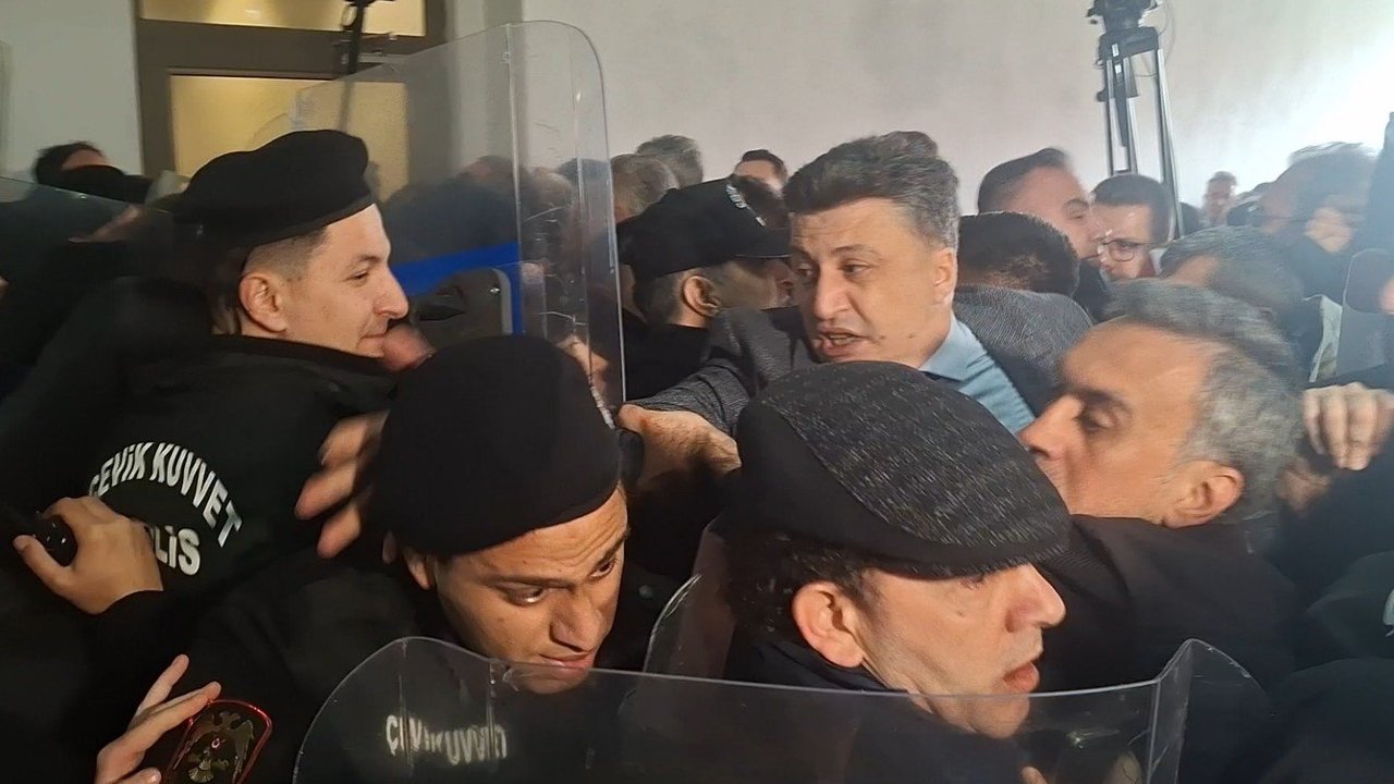 Memet Can YEŞİLBAŞ-Mehmet İNAN-Yiğithan HÜYÜK/BURSA, (DHA)- BURSA Büyükşehir Belediye Başkanı Mustafa Bozbey'in tutuklanıp, görevden uzaklaştırılmasının ardından belediye meclisinde yapılacak başkan vekili seçimi öncesi CHP'liler ile polis arasında arbede yaşandı. Binaya girmek isteyen kalabalığa biber gazıyla müdahale edildi.