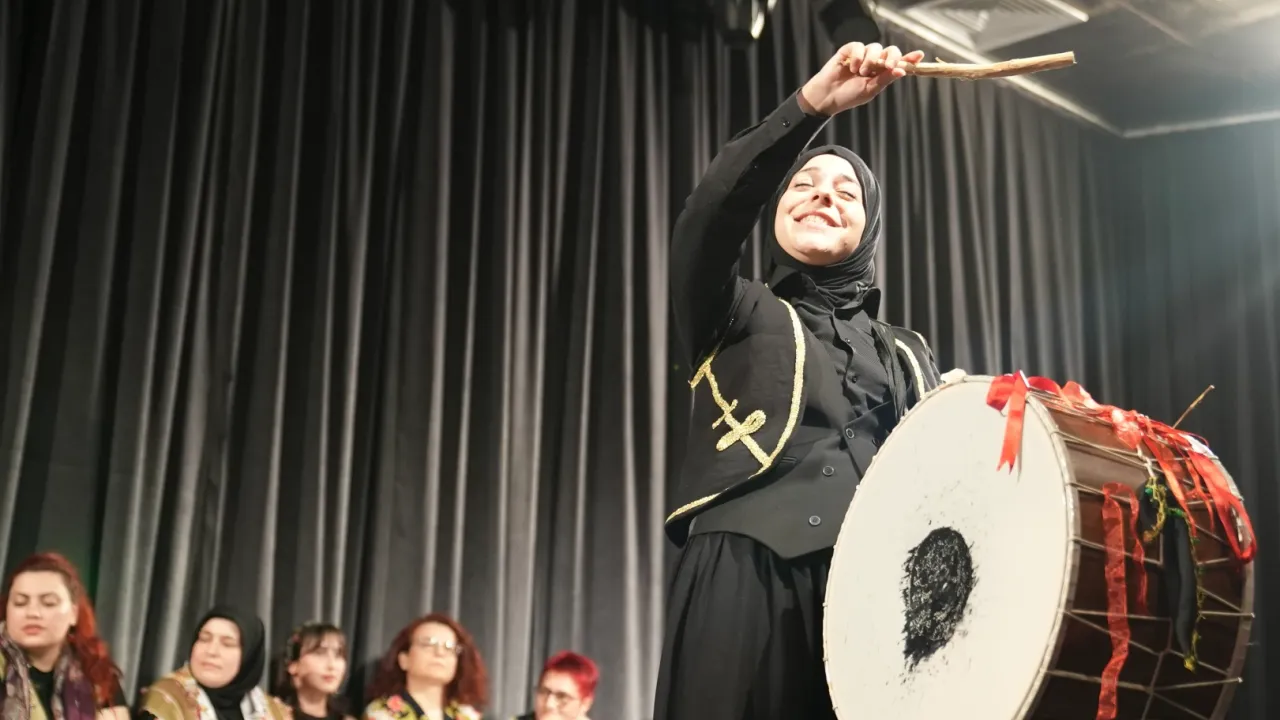 Gürsu Tiyatro Kulübü çatısı altında sadece üç ay gibi kısa bir sürede eğitim alan on altı kadın oyuncu, Haşmet Zeybek’in Düğün ya da Davul isimli oyununu sahnelediler.