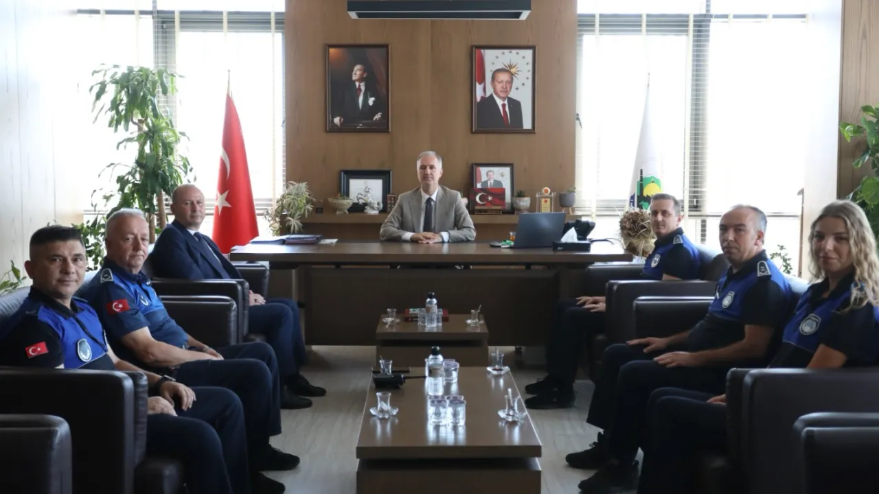 İnegöl Belediyesi Zabıta Müdürü Şener Dursun ve beraberindeki personel, Başkan Taban’ı makamında ziyaret etti. Zabıta Haftası ve faaliyetlere ilişkin istişarelerin yapıldığı ziyarette, Başkan Taban Müdür Şener Dursun nezdinde personelin haftasını kutladı.
