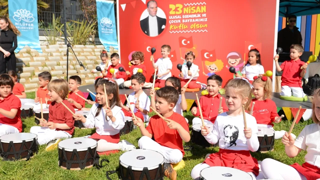 Bursa Nilüfer Belediyesi kreşlerinde eğitim gören çocuklar 23 Nisan Ulusal Egemenlik ve Çocuk Bayramı’nı coşku ile kutladı.BURSA (İGFA) - Bursa Nilüfer Belediyesi bünyesindeki Burak Berk, Ferhat Bakgör ile Çamlıca Kreş ve Gündüz Bakımevi öğrencileri, 23 Nisan Ulusal Egemenlik ve Çocuk Bayramı’nı coşkuyla kutladı. Minik öğrenciler, Çocuk Bayramı için hazırladıkları gösterileri büyük heyecanla sahneledi.