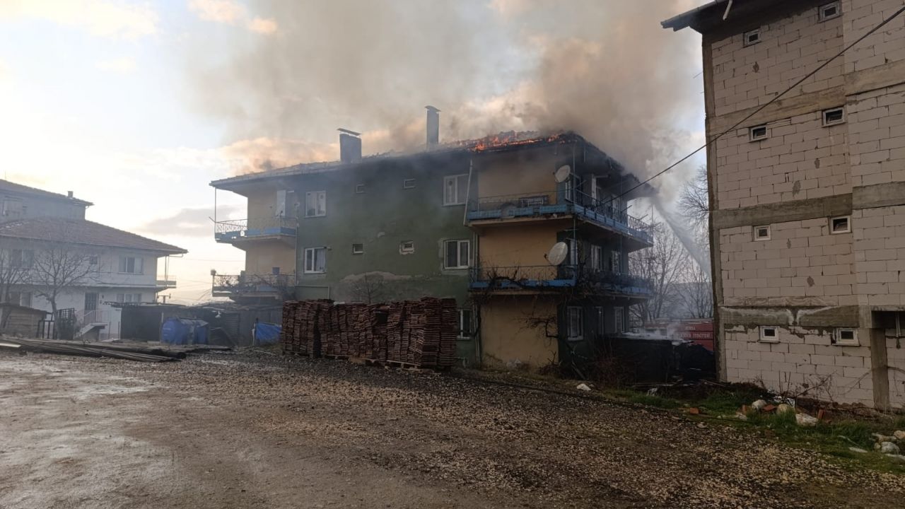 İtfaiye ekiplerinin müdahalesiyle söndürülen yangında çatıda hasar oluştu.