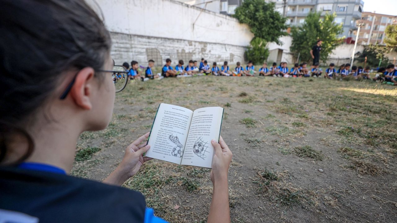 Gençleri spora kazandırmak ve futbolla birlikte zihinsel gelişimlerini de desteklemek isteyen kulübün antrenörleri Tayfun Albayrak ve Ümit Geçim, Mudanya İlçe Stadı'ndaki antrenmanlardan önce sporculara 20 dakika kitap okutuyor.