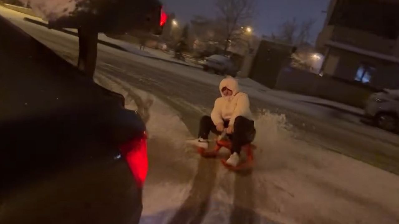 Diğer yandan İnegöl ilçesinde dün akşam saatlerinde kar yağışının ardından bir vatandaş, kızağını otomobilinin arkasına halatla bağladı. Beyaza bürünen asfalt üzerinde kayarak ilerleyen vatandaş, kar yağışının keyfini çıkardı. (DHA)
