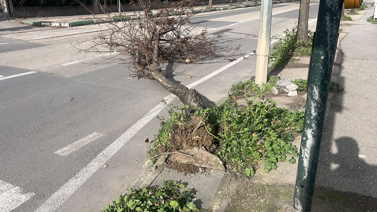 Bursa'da, saatteki hızı 51 kilometreye ulaşan lodos yaşamı olumsuz etkilerken, Orhaneli yolu üzerindeki konteyner yapılar yola sürüklenip devrildi. Otobüs durağı da kuvvetli rüzgara dayanamazken, kökünden sökülen bir ağaç ise hafif ticari araçların üzerine devrildi. (DHA)