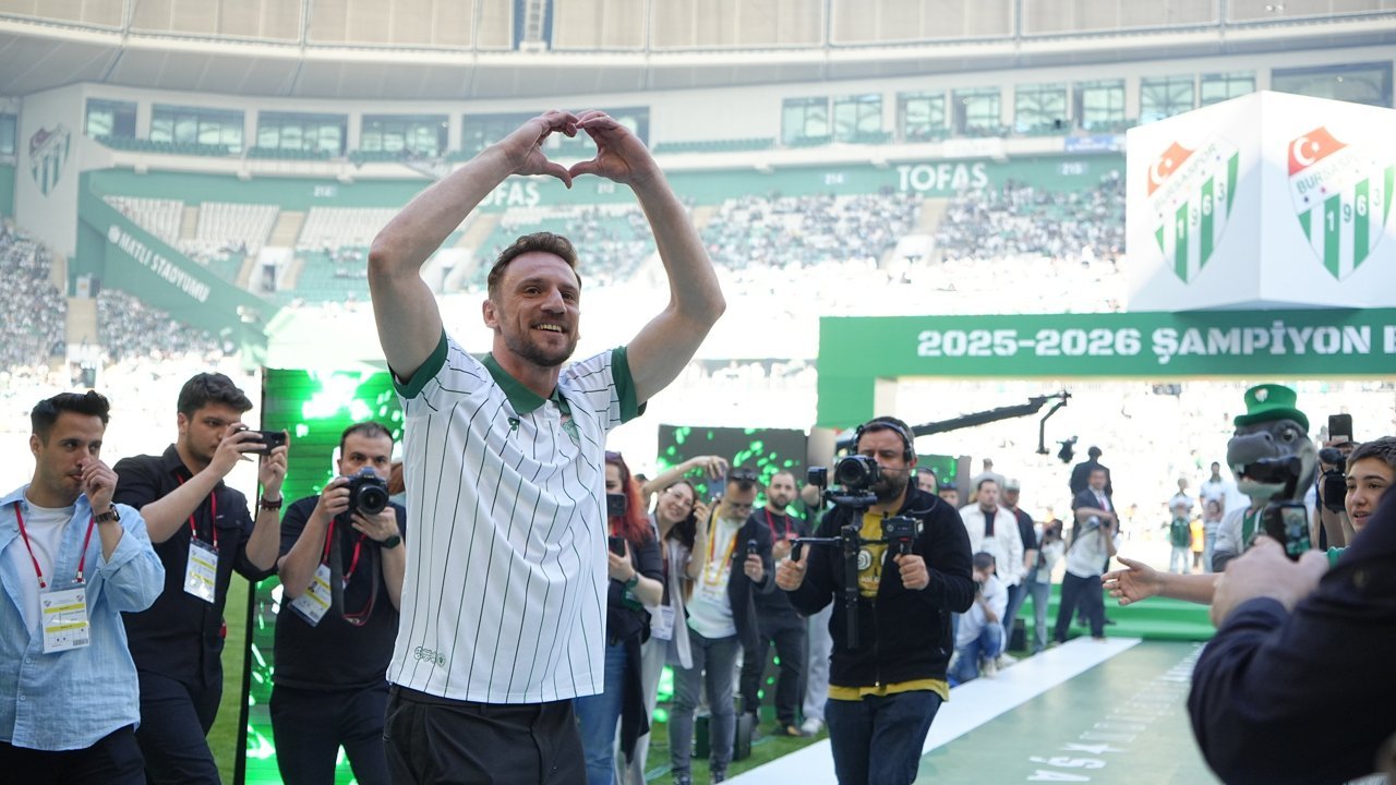 Yiğithan HÜYÜK-Hüseyin SEZGİN/ BURSA,(DHA)- 2'nci Lig Kırmızı Grup'ta şampiyon olarak 1'inci Lig'e yükselen ve son maçında deplasmanda Aliağa FK'yı 5-0 mağlup eden Bursaspor, şampiyonluk kupasını TFF Başkanı İbrahim Hacıosmanoğlu'nun elinden aldı.