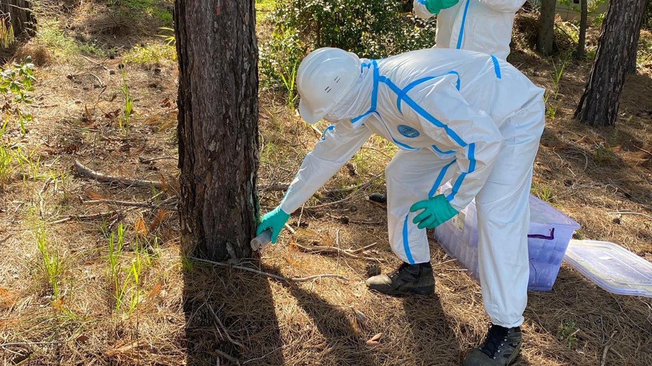 Cavit AKGÜN/MUĞLA, (DHA)- MUĞLA'nın Marmaris ilçesinde, ağaçlara zarar veren çam kese böceğine (thaumetopoea pityocampa) karşı ormana terminatör böcek (calosoma sycophanta) bırakıldı.