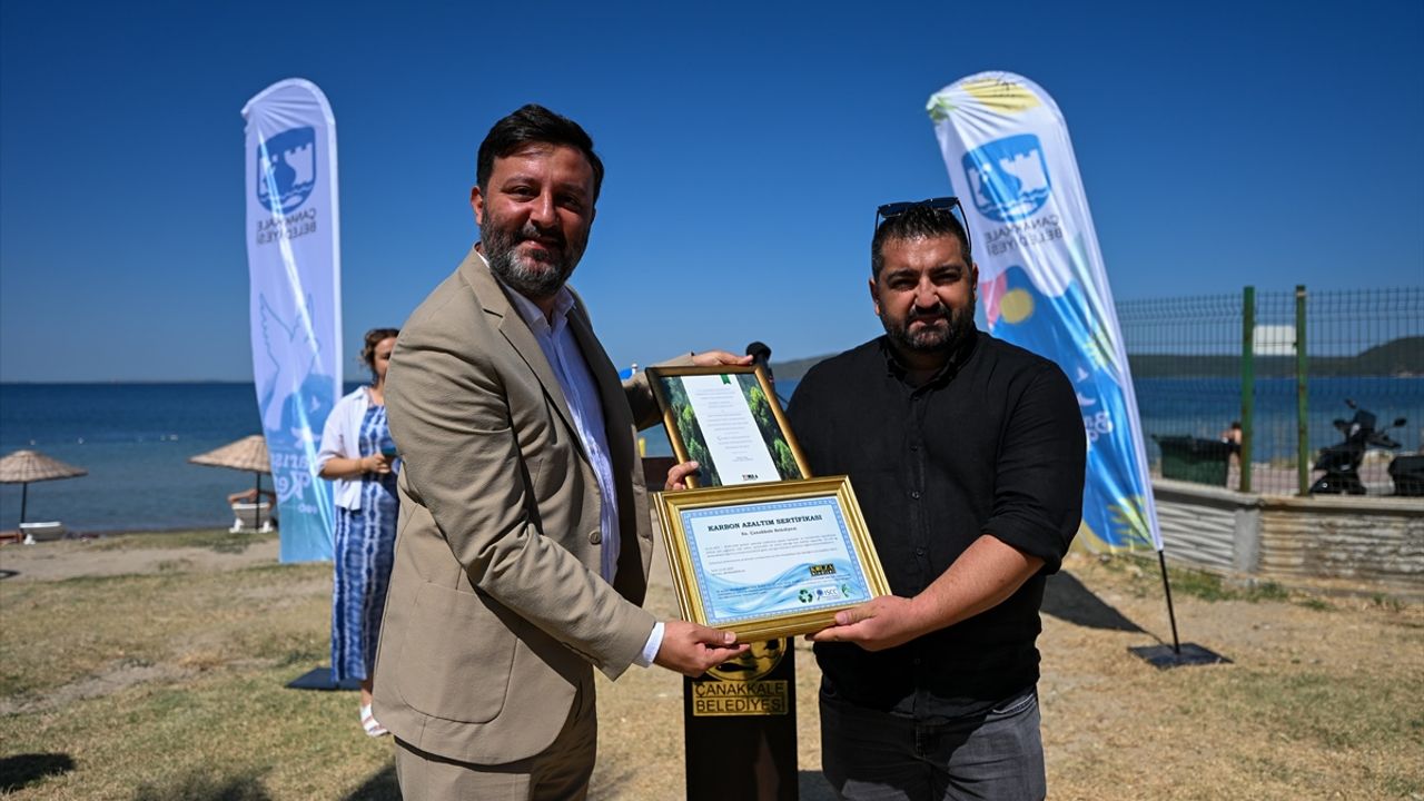 Dardanos Belediye Halk Plajı'nda düzenlenen törende, Mavi Bayrak sertifikası Türkiye Çevre Eğitim Vakfı (TÜRÇEV) Kuzey Ege İlleri Koordinatörü Ayhan Örten tarafından Çanakkale Belediye Başkan Vekili Umut Karagöz'e takdim edildi.