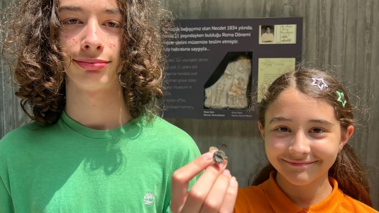 Geçen yıl Troya Müzesi'nde gerçekleştirilen "Takeover Day (Çocuklar Müzeyi Ele Geçirdi)" adlı projeye katılan 10 yaşındaki Aden Dayangaç, evlerinin yakınlarında tarihi eser niteliğinde olabileceğini düşündüğü bir nesne buldu.