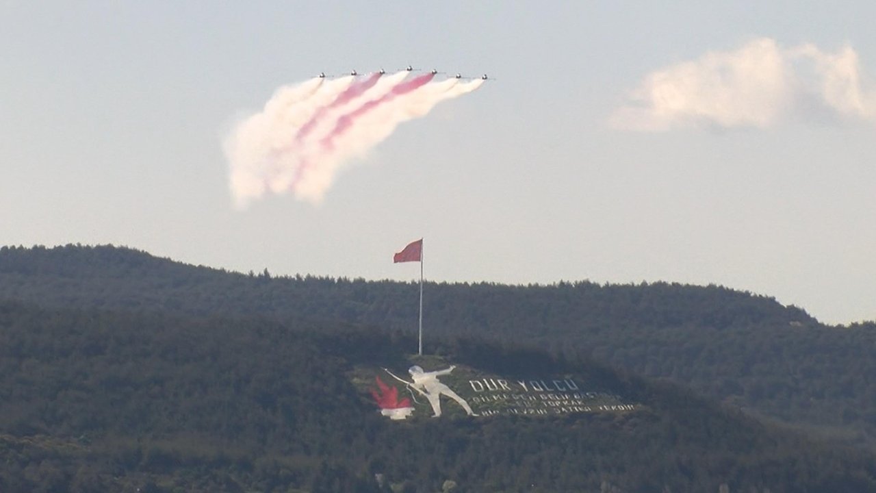 Çanakkale Savaşları Gelibolu Tarihi Alan Başkanlığı tarafından organize edilen gösteride, Balıkesir'in Bandırma ilçesinden havalanan 7 pilot seyircileri selamladı. Gösteride, pilotlar çeşitli uçuş düzenleriyle seyircilere unutulmaz anlar yaşattı. Çanakkalelilerin ilgiyle izlediği gösteri uçuşunda pilotlar akrobatik hareketler sergiledi. Türk Yıldızları, 25 Nisan'da Çanakkale Kara Savaşları'nın 111'nci yıl dönümünde etkinlikleri kapsamında Şehitler Abidesi'nde gösteri uçuşu yapacak. (DHA)