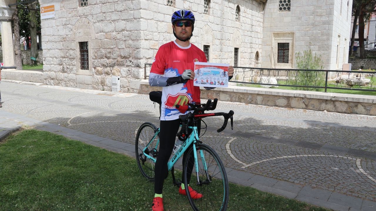 AMASYA (AA) - Çanakkale Şehitliği'nden aldığı toprak ve Türk bayrağını Samsun'a ulaştırmak üzere yola çıkan bisikletli, Amasya'ya ulaştı.