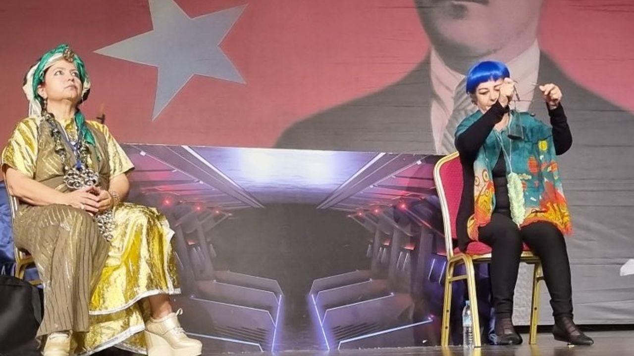 İZMİR (İGFA) -Narlıdere Belediyesi Pakize Ateş Kadın Danışma Merkezi Güçlü Kadınlar Tiyatro Grubu, Çantadaki Sır adlı oyunlarıyla Güzelbahçe Kültür Merkezi’nde sahne aldı.Cumhuriyetimizin 100.yılına ve Anadolu kadının gücüne vurgu yapan ve dünya tarihine damga vuran kadınların anlatıldığı oyunu Güzelbahçe Kent Konseyi’nin daveti ile bölge halkıyla buluşturan Güçlü Kadınlar Tiyatro Grubu, izleyenlerden büyük alkış aldı. M.Kemal Atatürk’ü ilk kez bir kadın oyuncunun canlandırdığı oyuna konuk olarak katılan Mustafa Başgülşen’in Atatürk’ün gençliğini izleyicilerle buluşturduğu ve Türk Bayrağını teslim aldığı sahne, sanatseverlere duygulu anlar yaşattı. Şaziment Duran’ın yazıp yönettiği, makyözlüğünü popüler dizi ve sinema filmlerinin makeup artisliğini yapan Özlem Çıldam’ın üstlendiği oyunda ayrıca, işsizlik, pahalılık ve depremin yarattığı acı tablo da gözler önüne serildi.Güçlü Kadınlar Tiyatro Grubu, tiyatro severlerin gönlünü kazanan oyunda geçtiğimiz günlerde kaybettikleri arkadaşları Neslihan Konacaklı’yı da unutmadı.