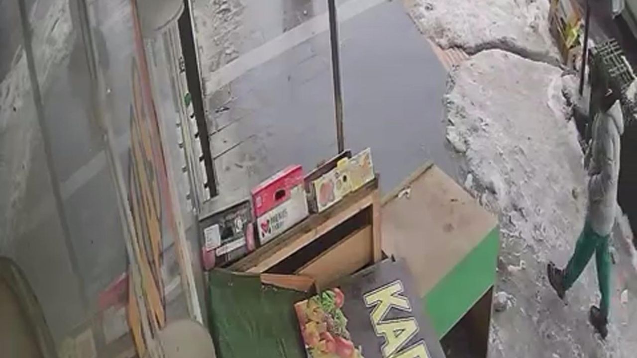 Kentte sıcaklığın artması ile bina çatılarında biriken karlar da erimeye başladı. Şehitler Mahallesi'ndeki 5 katlı binanın çatısında biriken kar ve buz kütlesi, o sırada kaldırımda yürüyen bir çocuğun hemen yanına büyük bir gürültüyle düştü. Kar yığınının altında kalmaktan saniyelerle kurtulan çocuk büyük korku yaşarken, olay bir iş yerinin güvenlik kamerasına yansıdı. (DHA)