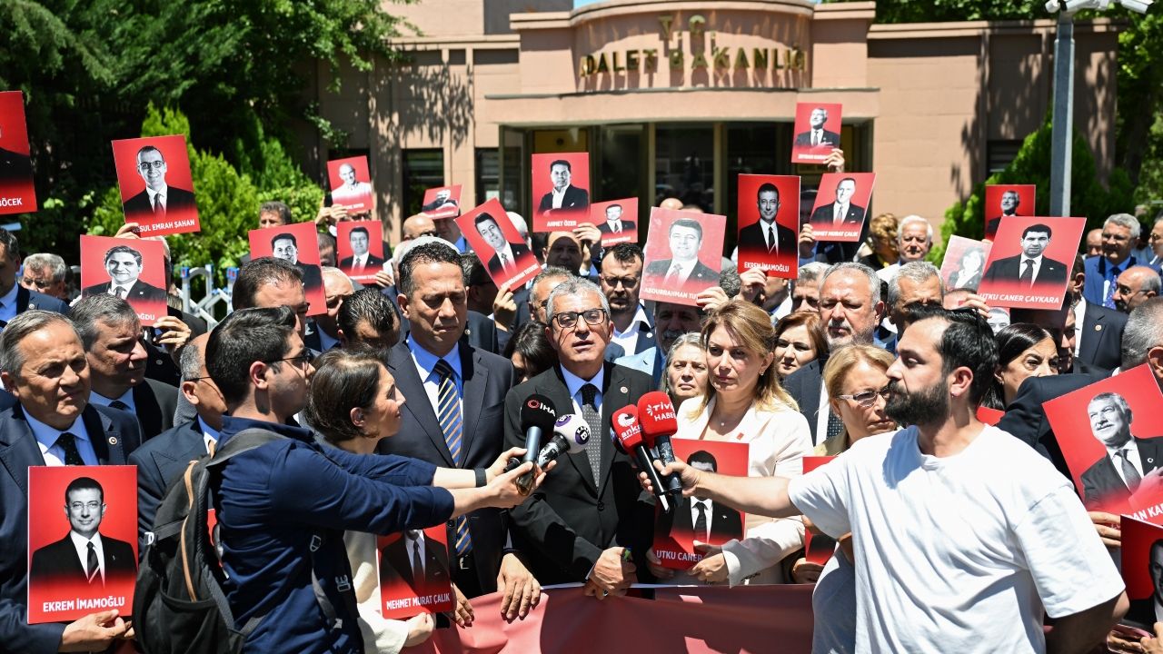 TBMM'den Adalet Bakanlığına, ellerinde gözaltında bulunan CHP'li belediye başkanlarının fotoğraflarının yer aldığı dövizler ve "Egemenlik milletindir" yazılı pankart ile yürüyen milletvekilleri, sonrasında basın açıklaması yaptı.