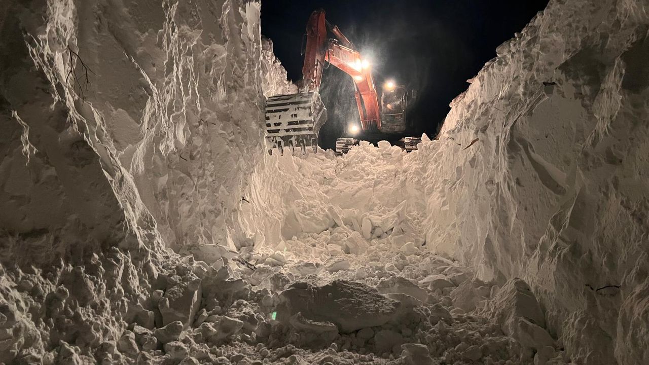 Sekvan KÜDEN/ŞIRNAK, (DHA)- ŞIRNAK'ın Beytüşşebap ilçesi Beşağaç köyü yakınında 3 gün önce düşen çığın kapattığı yolların açılması için İl Özel İdaresi ekipleri, iş makinelerinin boyunu aşan kar kütleleriyle zorlu şartlarda çalışmalarını sürdürüyor.