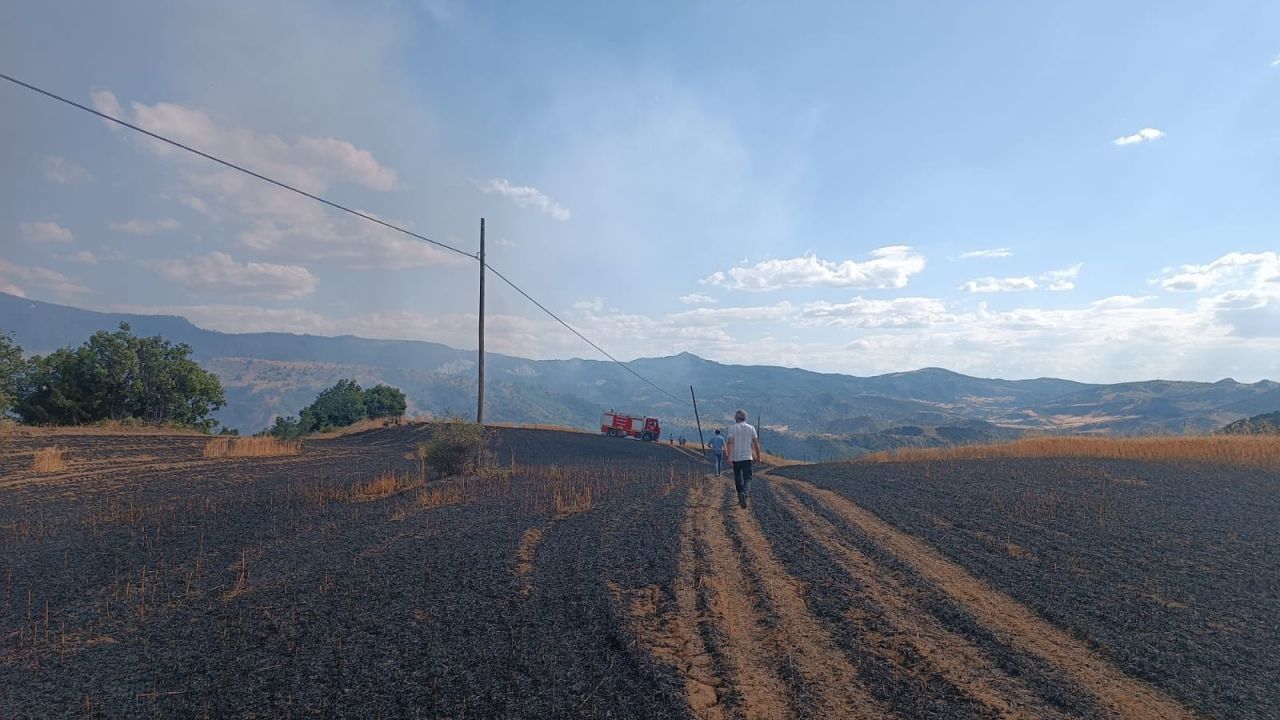 İlçeye bağlı Aşılarmut köyü yolunda bulunan buğday ekili arazide yangın çıktı.