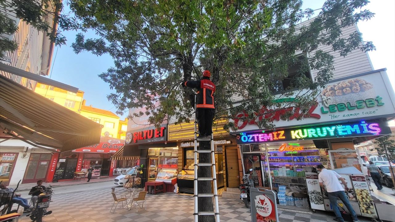 Sunguroğlu Mahallesi Muhsin Yazıcıoğlu Caddesi'nde ağaca çıkan kedi, çevredekilerin ihbarı üzerine olay yerine gelen Sungurlu Belediyesi itfaiye ekiplerince indirildi.