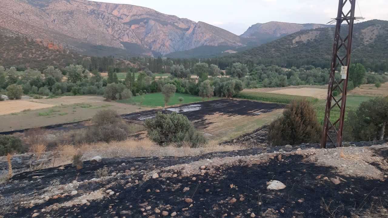 Aşdağul beldesinde Mehmet Civan (55), Adanın Dip mevkisindeki tarlasını hasat ettikten sonra kalan anızları temizlemek amacıyla ateş yaktı.
