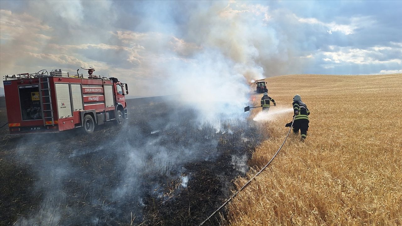 ÇORUM (AA) - Çorum'da kimliği belirsiz kişi tarafından kasıtlı olarak başlatıldığı iddia edilen yangında yaklaşık 120 dekar buğday tarlası yandı.