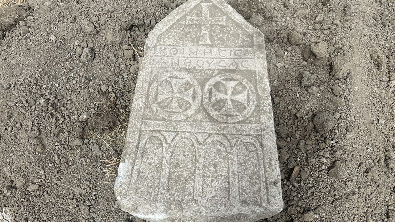 Topraktan çıkardığı kütlenin üzerinde haç ve harflerin olduğunu gören operatör, durumu 112 Acil Çağrı Merkezi'ne bildirdi.