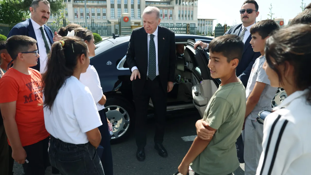 Cumhurbaşkanı Erdoğan, kendisine sevgi gösterisinde bulunan çocuklarla hatıra fotoğrafı çektirdi.