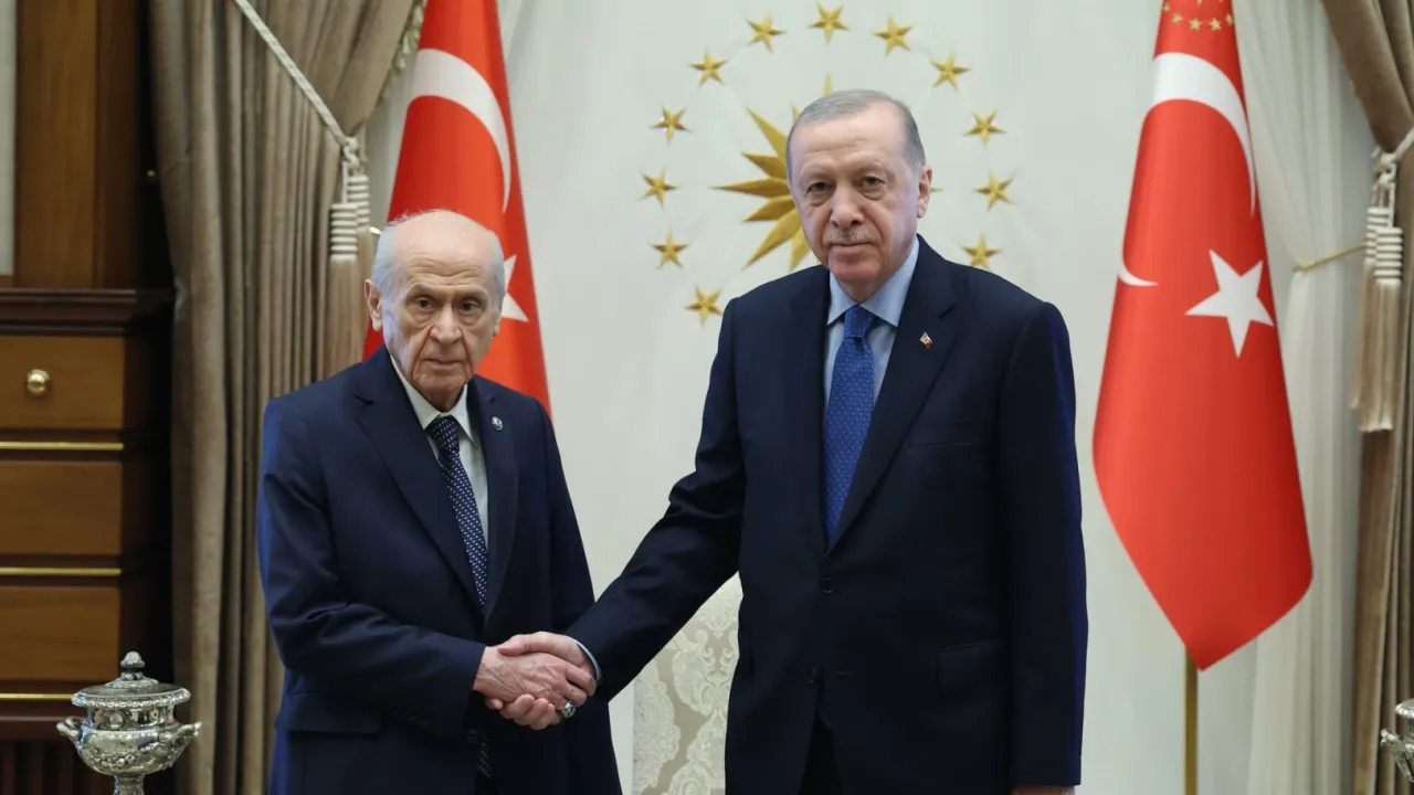 Cumhurbaşkanı Recep Tayyip Erdoğan, MHP Genel Başkanı Devlet Bahçeli ile bugün Cumhurbaşkanlığı Külliyesi’nde bir araya geldi.ANKARA (İGFA) - Cumhurbaşkanı Recep Tayyip Erdoğan, Milliyetçi Hareket Partisi (MHP) Genel Başkanı Devlet Bahçeli’yi Cumhurbaşkanlığı Külliyesi’nde kabul etti.