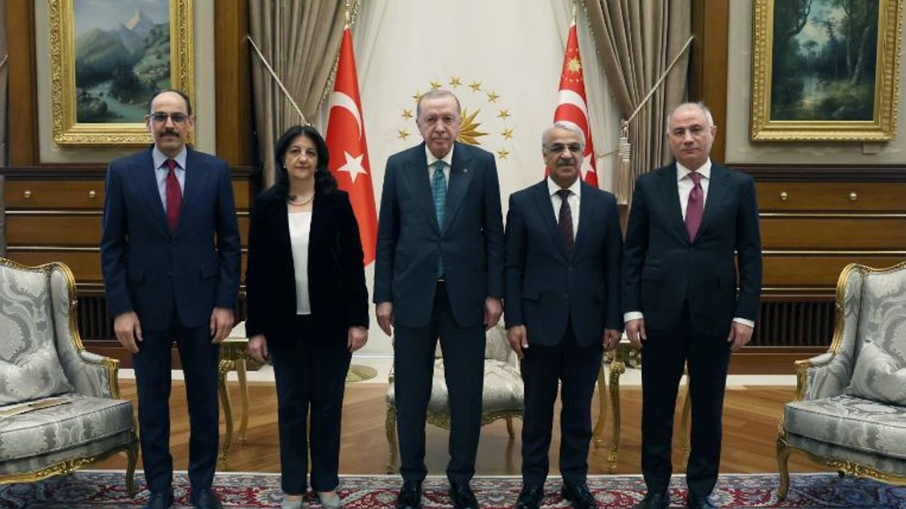 Aybala MELEK/ANKARA, (DHA)- CUMHURBAŞKANI Recep Tayyip Erdoğan, DEM Parti İmralı heyeti üyeleri TBMM Başkan Vekili ve Van Milletvekili Pervin Buldan ile Şanlıurfa Milletvekili Mithat Sancar'ı kabul etti.