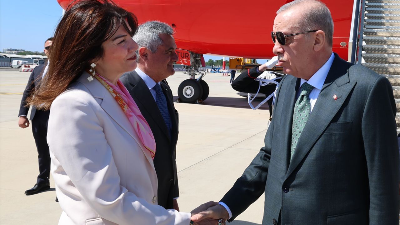 Cumhurbaşkanı Erdoğan'ı, Fiumicino Leonardo da Vinci Uluslararası Havalimanı'nda, Türkiye'nin Roma Büyükelçisi Elif Çomoğlu Ülgen ve beraberindeki elçilik heyeti karşıladı.