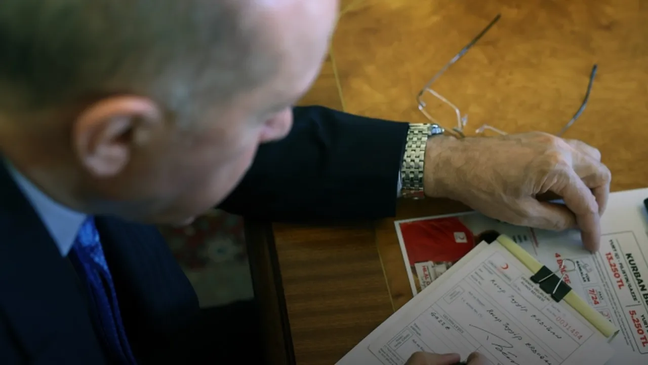 Türk Kızılay'ın çalışmaları hakkında bilgi alan Cumhurbaşkanı Erdoğan, kurban bağışını Gazze'de kesilmek üzere Türk Kızılay'a yaptı.