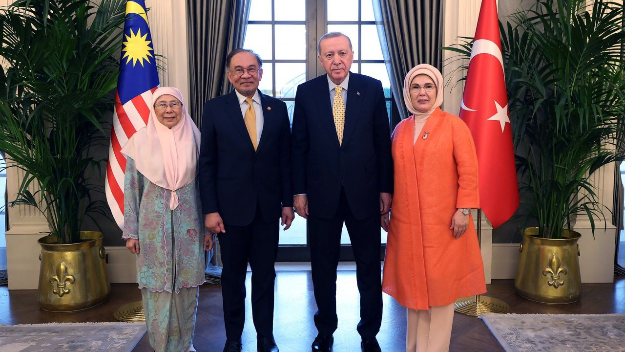 Cumhurbaşkanı Erdoğan, Malezya Başbakanı Enver İbrahim ve eşi Wan Azizah İsmail'i kabul etti. Basına kapalı gerçekleşen kabulde Cumhurbaşkanı Erdoğan'ın eşi Emine Erdoğan da yer aldı. (DHA)