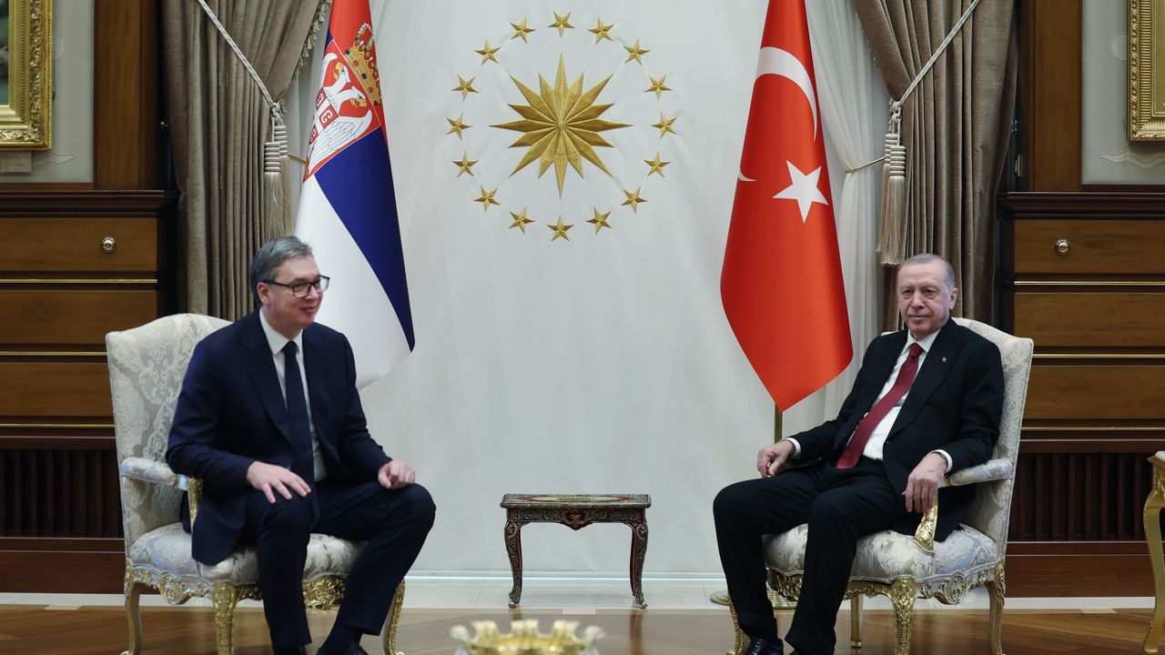 Cumhurbaşkanı Erdoğan, Türkiye'ye resmi ziyarette bulunan Sırbistan Cumhurbaşkanı Aleksandar Vucic'i Cumhurbaşkanlığı Külliyesi'nde resmi törenle karşıladı. Erdoğan ile Vucic, törenin ardından ikili ve heyetler arası görüşmeye geçti. Görüşmelerin ardından iki ülke arasında varılan anlaşmaların imza töreni gerçekleştirilecek. Daha sonra Erdoğan ve Vucic, ortak basın toplantısı düzenleyecek. (DHA)