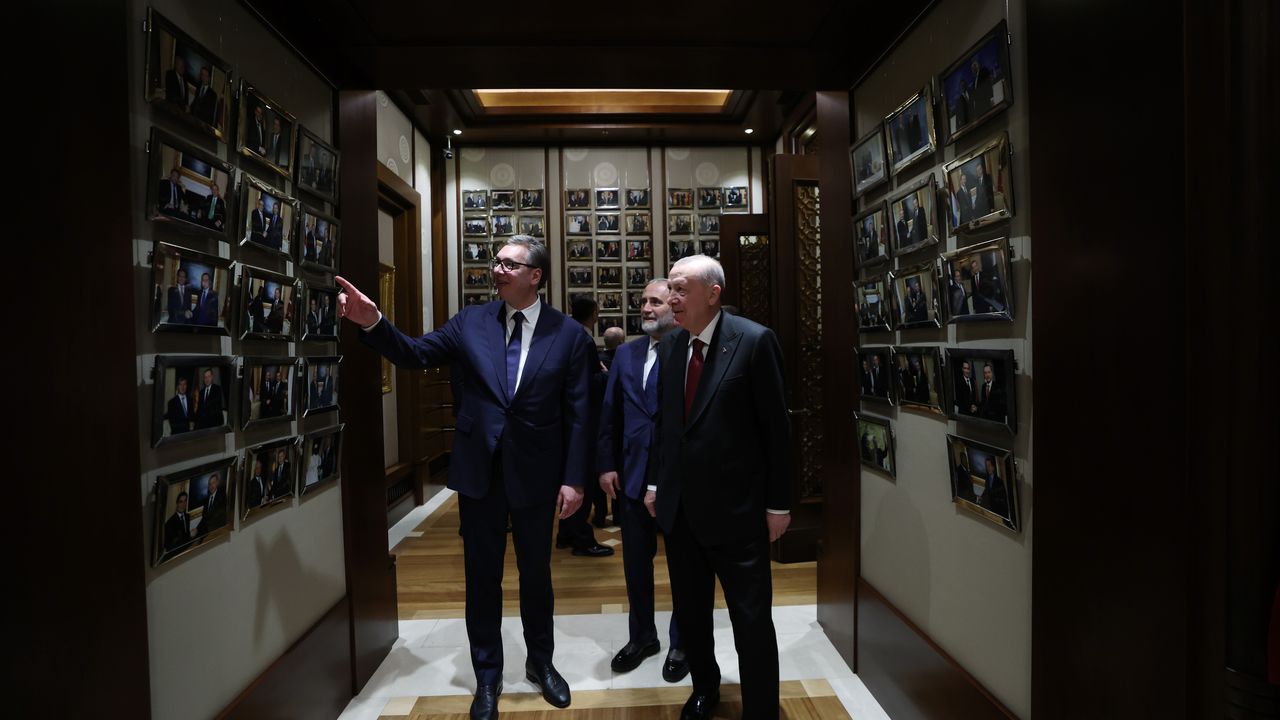 Cumhurbaşkanı Recep Tayyip Erdoğan ile Sırbistan Cumhurbaşkanı Aleksandar Vucic, ikili ve heyetler arası görüşme sonrasında ortak basın toplantısı düzenledi. Cumhurbaşkanı Erdoğan, Sırbistan Cumhurbaşkanı Vucic ile son olarak 11 Ekim 2024 tarihinde Belgrad'da 4'üncü Yüksek Düzeyli İş Birliği Konseyi Toplantısı'nı gerçekleştirdiklerini anımsatarak, 'Aradan geçen süre zarfında gerek ikili münasebetlerimizde gerek bölgesel ve küresel meselelerde önemli gelişmeler yaşandı. Bugün kendisiyle, bu gelişmelerin ilişkilerimize etkilerini değerlendirip ileriye yönelik atacağımız adımları istişare ettik. Bilhassa Balkanlar'da istikrarın korunması ve ekonomik kalkınmanın güçlendirilmesi açısından neler yapabileceğimizi ele aldık' dedi.