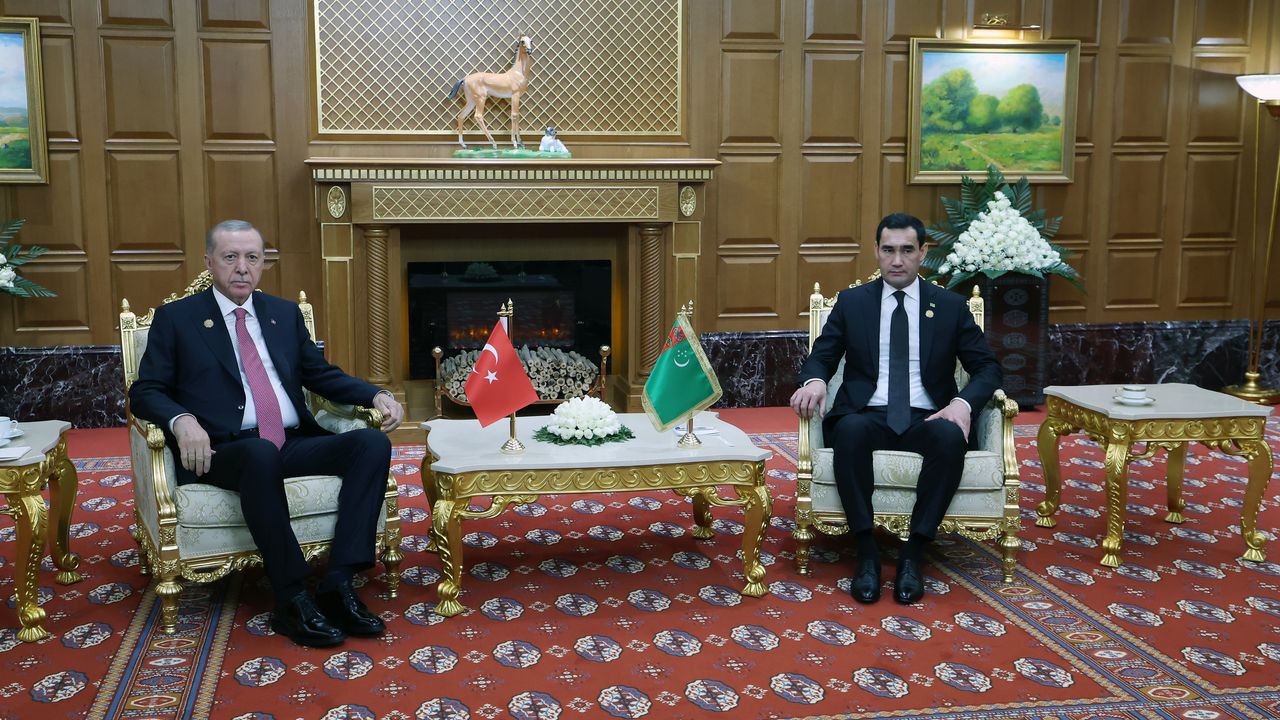 TÜRKMENİSTAN, (DHA) - CUMHURBAŞKANI Recep Tayyip Erdoğan, Türkmenistan'ın başkenti Aşkabat'ta düzenlenen Uluslararası Barış ve Güven Forumu'ndaki ikili görüşmeleri kapsamında Türkmenistan Cumhurbaşkanı Serdar Berdimuhamedov'la görüştü.