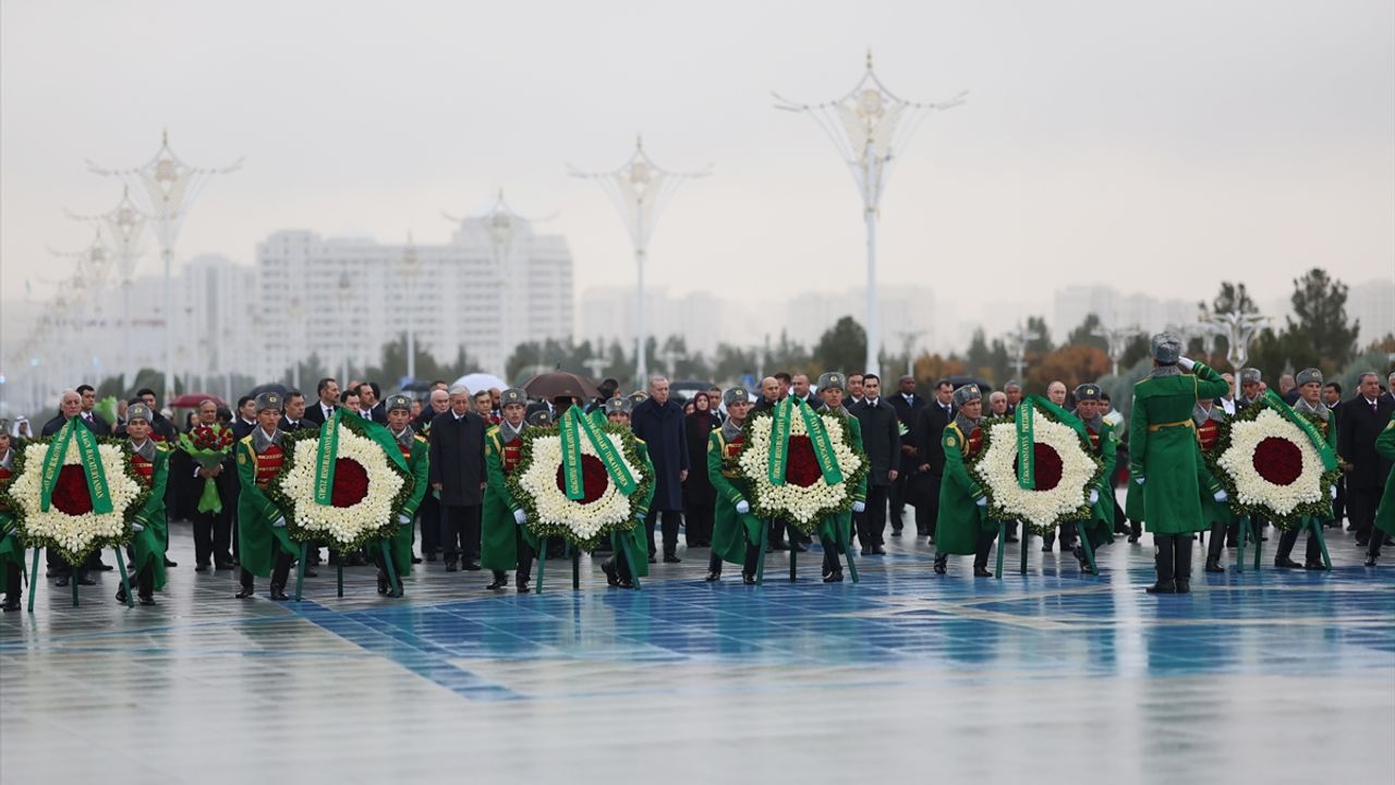 Cumhurbaşkanı Erdoğan, Uluslararası Barış ve Güven Forumu'na katılmak üzere geldiği Türkmenistan'ın başkenti Aşkabat'ta, aralarında Rusya Devlet Başkanı Vladimir Putin ve İran Cumhurbaşkanı Mesud Pezeşkiyan'ın da olduğu davetli devlet başkanları ve hükümet başkanlarıyla Tarafsızlık Anıtı'na çelenk koyma törenine iştirak etti.
