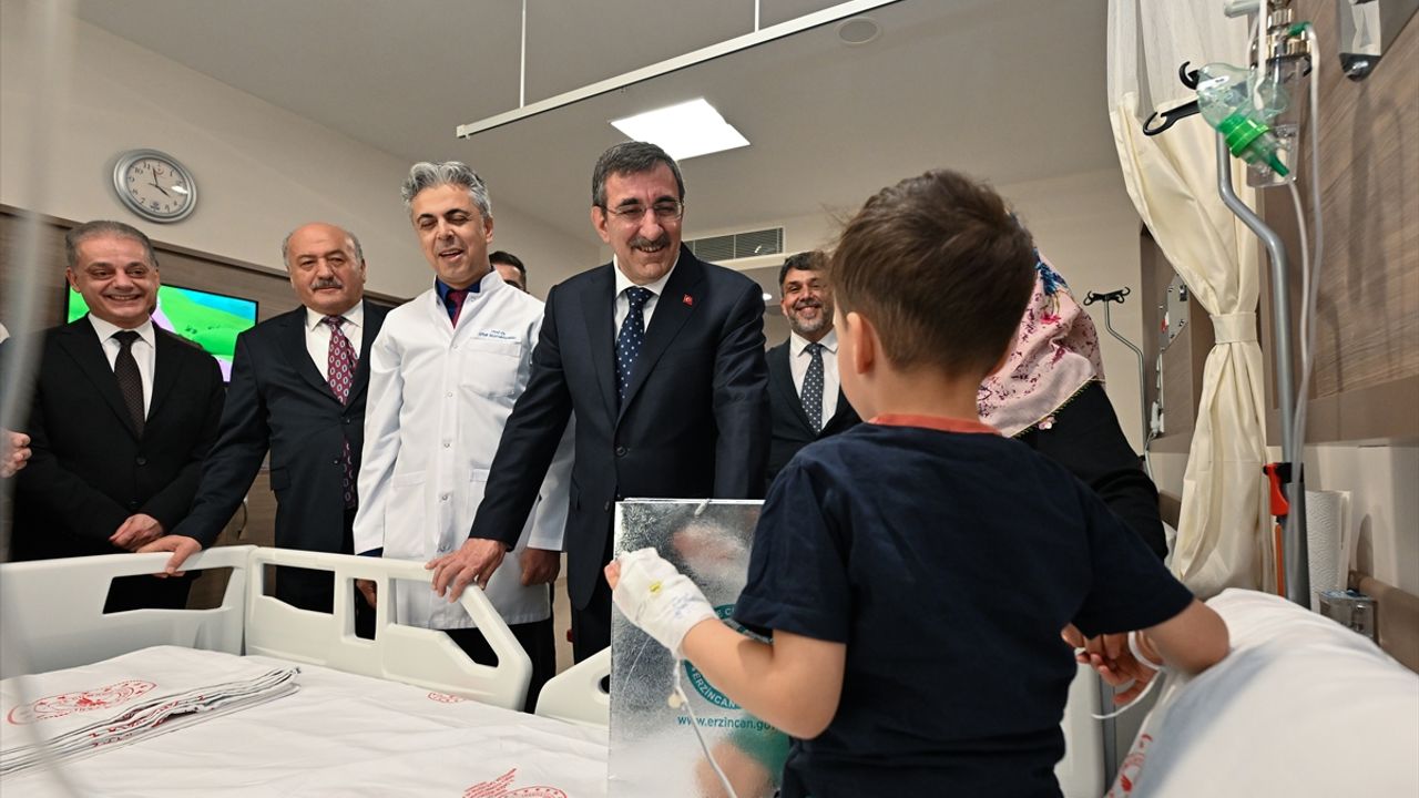 ERZİNCAN (AA) - Cumhurbaşkanı Yardımcısı Cevdet Yılmaz, Erzincan Binali Yıldırım Üniversitesi (EBYÜ) Mengücek Gazi Eğitim ve Araştırma Hastanesi Çocuk Sağlığı ve Hastalıkları Servisi'nde tedavi gören hastaları ziyaret etti.