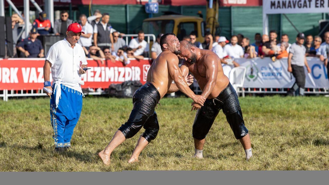 Rakibi Yusuf Can Zeybek'i yenen Orhan Okulu, 12. Geleneksel Manavgat Yağlı Güreşleri'nde başpehlivanlığı kazandı.
