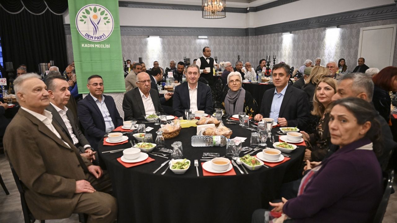 "Geçen gün heyetimiz tekrar Öcalan'la görüştü. Bu süreçte yine bizi umutlandıran açıklamalarda bulundu. Öcalan, 'ben umutluyum, iyi şeylerin olacağını umuyorum, bu konuda hazırlıklarım var. Eğer gerçekten bu konuda ülkeyi yönetenler, devlet de samimiyse bu ülke hayatında hiçbir dönem görmediği demokrasiye, özgürlüklere, refaha kavuşabilir' dedi. Biz de bunu tekrarlıyoruz ve bugün bu dayanışma yemeğinde Türkiye'nin bütün renklerini bir arada barındıran bu çatı altında diyoruz ki bu ülkeye çatışma değil, inkar değil, savaş değil, yoksulluk değil, barış, adalet, hukuk, demokrasi gerek. Adalet, barış, demokrasi, hukuk ve özgürlükler için de Öcalan'ın yapmış olduğu çağrıya hep birlikte sahip çıkacağız."