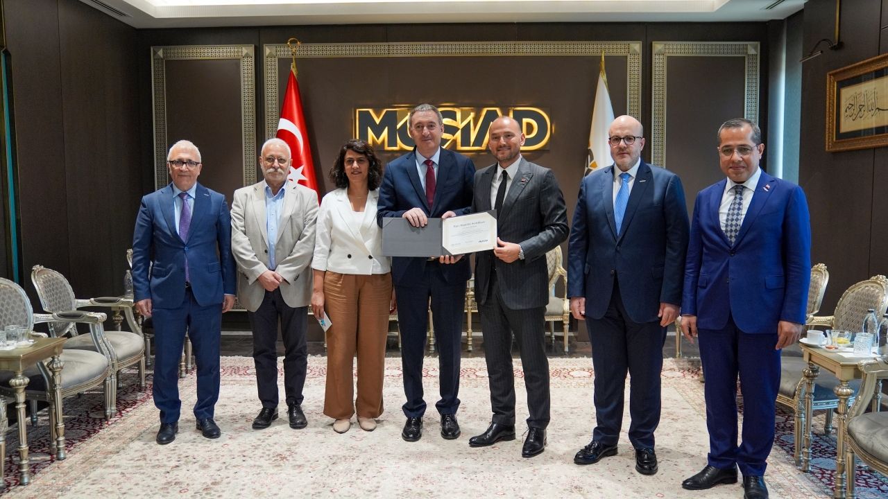 Parti heyetini, MÜSİAD Genel Başkanı Burhan Özdemir ve genel başkan yardımcıları karşıladı.