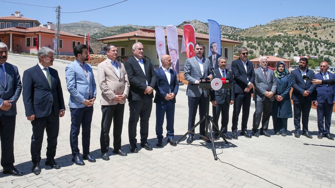 Köydeki 107 evde vatandaşların güvenle oturduğunu aktaran Kurum, 6 Şubat 2023 sabahı yaşanan büyük felaketin ilk dakikalarından bu yana ekipleriyle sahada olduklarını, Cumhurbaşkanı Erdoğan'ın "Yuvasına kavuşmayan, iş yerini açamayan tek bir esnafımız, vatandaşımız kalmayacak" sözünün kararlılığıyla 3 bin 500 şantiyede 7 gün 24 saat yüzbinlerce emekçiyle verdikleri sözleri yerine getirmenin gayreti içinde olduklarını vurguladı.