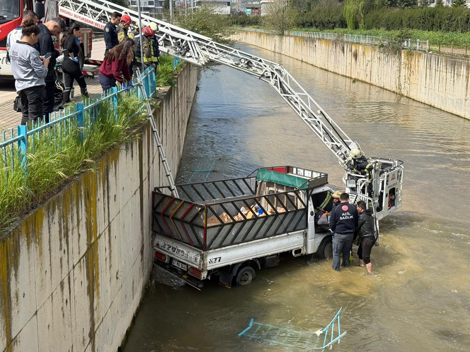 Kaza, saat 14.00 sıralarında Yahya Kaptan Mahallesi Bestekar Amir Ateş Caddesi'nde meydana geldi. M.E.'nin kontrolünü yitirdiği kamyonet, demir korkuluklara çarpıp yerinden sökerek Akarca Deresi'ne uçtu. Çevredekilerin 112 Acil Çağrı Merkezi'ne ihbarı üzerine bölgeye itfaiye, sağlık ve polis ekipleri sevk edildi. Dereye inen itfaiye eri, kamyonetteki M.E.'ye kalp masajı yaptı. M.E., ardından itfaiyenin merdiveniyle caddeye çıkarıldı. Ambulansa alınan ve Kocaeli Şehir Hastanesi'ne kaldırılan M.E.'nin hayati tehlikesinin sürdüğü öğrenildi. Bu arada kaza yeri dron ile görüntülendi.