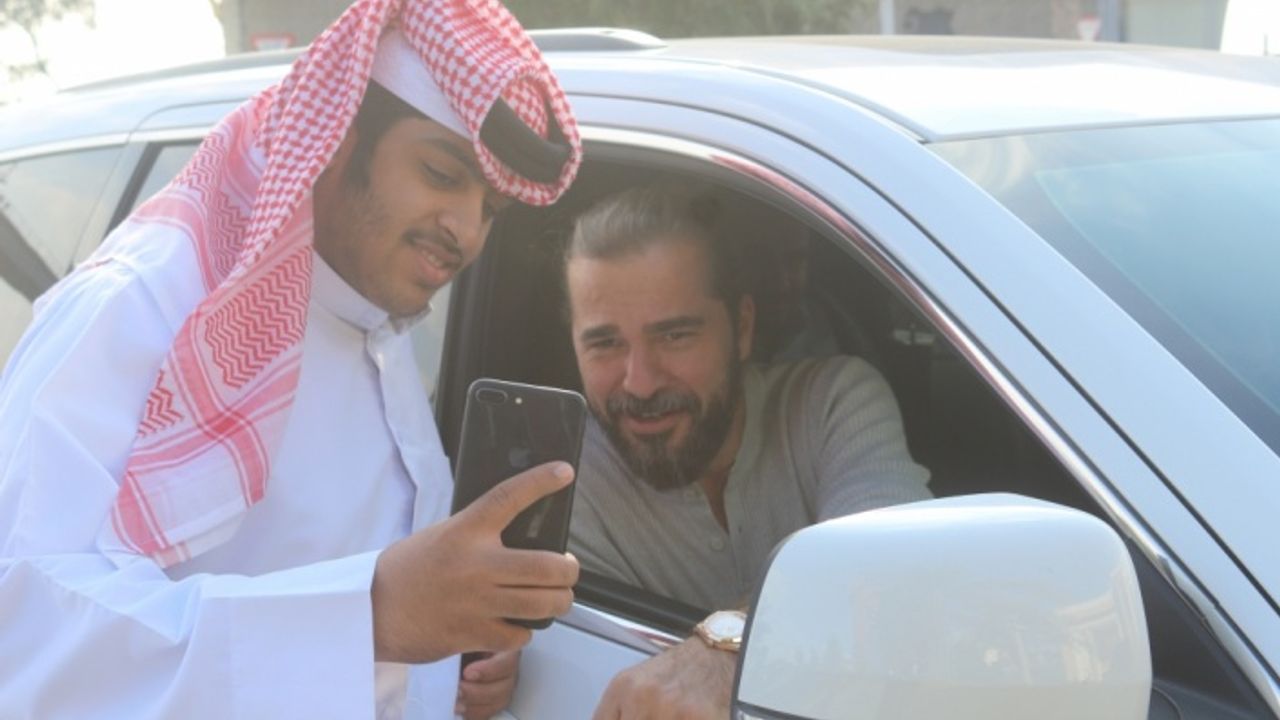 Hayranları Arap dünyasında beğeniyle izlenen "Diriliş Ertuğrul" dizisi oyuncusu Düzyatan'la fotoğraf çektirmek için birbiriyle yarıştı.