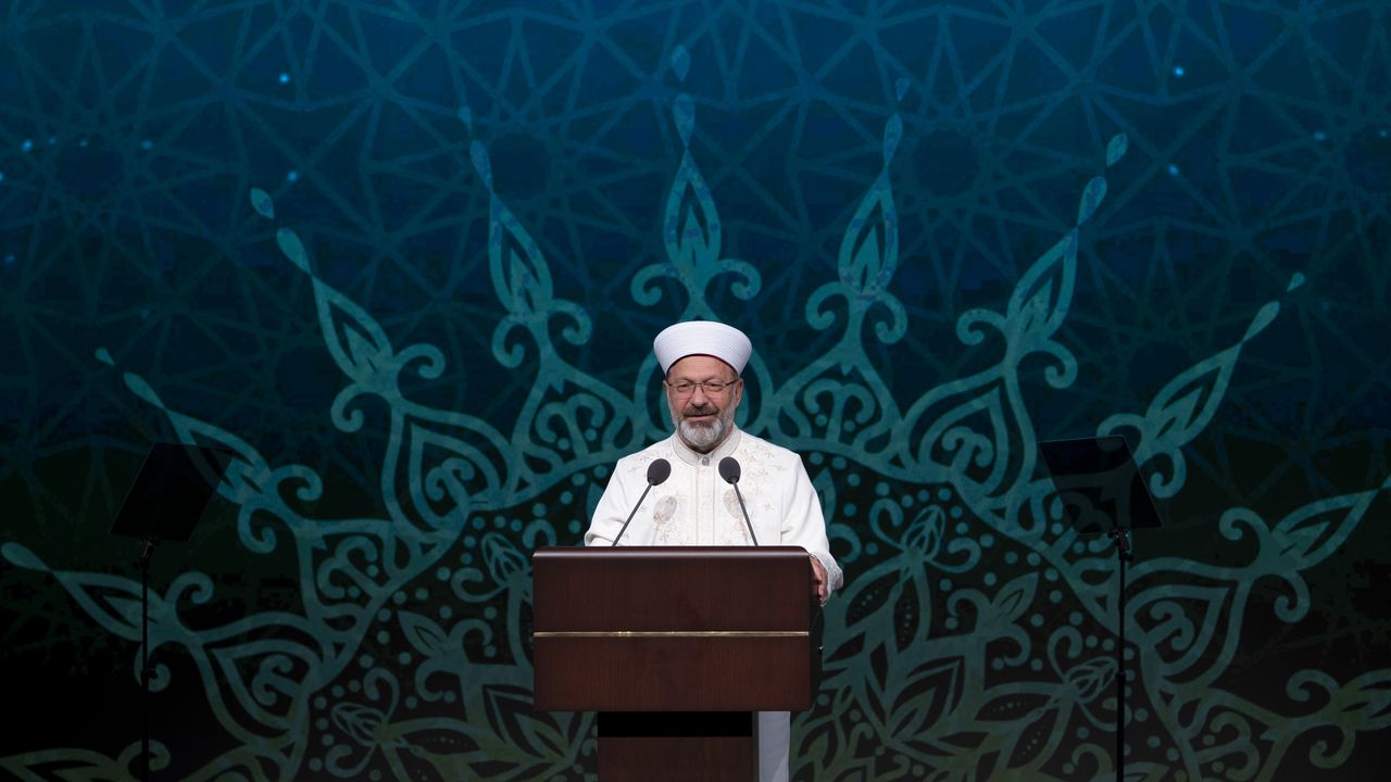 Ali Erbaş, 'Bu gece, Yüce Rabb'imizin insanlığa en büyük ikramı olan Resul-i Ekrem Efendimizin yeryüzünü teşrif ettiği gecedir. Bu gece, karanlıkların çepeçevre kuşattığı insanlığın ufkuna, ilahi rahmetin bir güneş gibi doğduğu gecedir. Bu gece sevinç, bu gece sürur, bu gece muhabbet gecesidir. Bu gece umut, bu gece şükür, bu gece rahmet gecesidir.' diye konuştu.