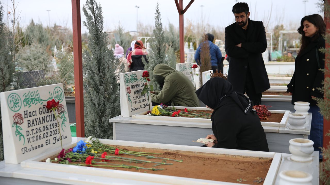 DİYARBAKIR (AA) - Diyarbakır'da 6 Şubat 2023'te meydana gelen depremlerde yakınlarını kaybedenler mezarlık ziyareti gerçekleştirdi.