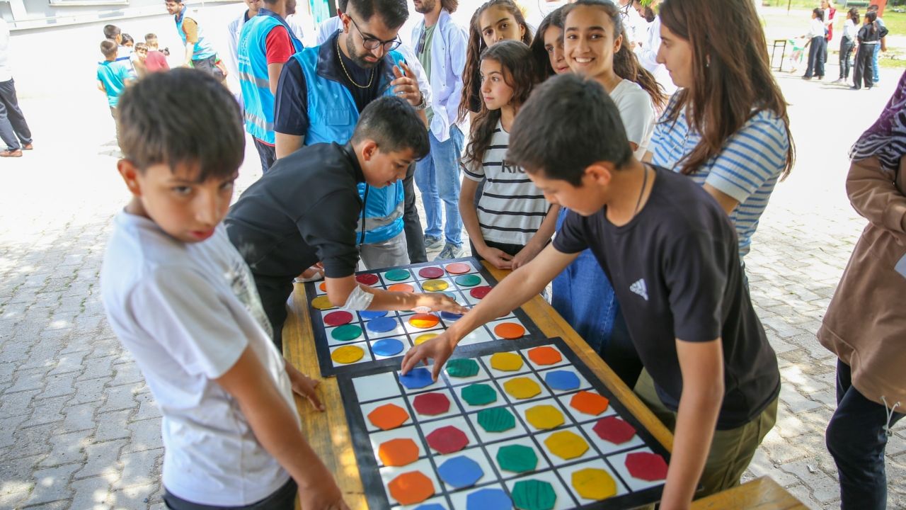Okulun bahçesinde yurtta manevi danışmanlık hizmeti veren görevliler ile gençlik merkezi çalışanlarının desteğiyle oluşturulan alanda çocuklar üniversiteli abla ve ağabeyleriyle matrak, futbol, bowling ve pinpon gibi oyunlar oynadı, eğlenceli zaman geçirdi.